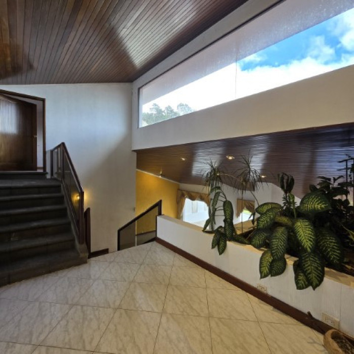 Chimenea de leña y barra en la sala principal; gabinetes, top de granito, cook top, horno, refrigeradora de doble puerta y horno microondas en la cocina. 2 walk-in closets y baño completo privado para la habitación principal, walk-in closet y baño privado para una de las habitaciones secundarias, closts en las otras dos habitaciones secundarias, instalaciones para jacuzzi en el gimnasio. Paneles solares y circuito de agua caliente en toda la casa. El parqueo es para vehículos grandes, techado y con portón electrónico. Ducto para elevador para conectar los 3 niveles de la casa, libreras en el estudio muebles empotrados en diferentes ambientes.