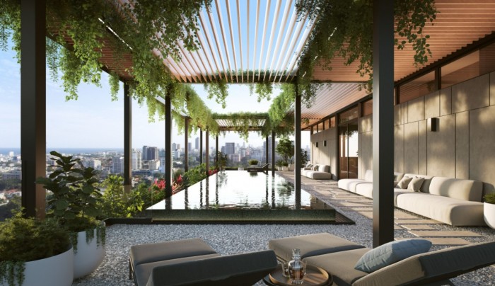 •Piscina panorámica en el nivel 20 con una impresionante vista al mar y la ciudad de Santo Domingo.