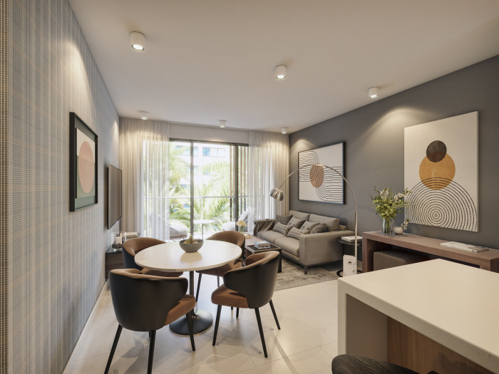 Modernos Apartamentos de 2 habitaciones y Aparta-Estudio de 1 habitación con sala-comedor, cocina, bano. Con 67mt2. Y los Apartamentos desde 96mt2 con precio desde US$152,570.