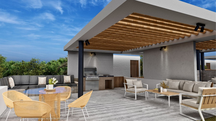 Apartamentos en el 2do nivel, Sala con conexión a balcón y derecho a terraza privada en azotea.