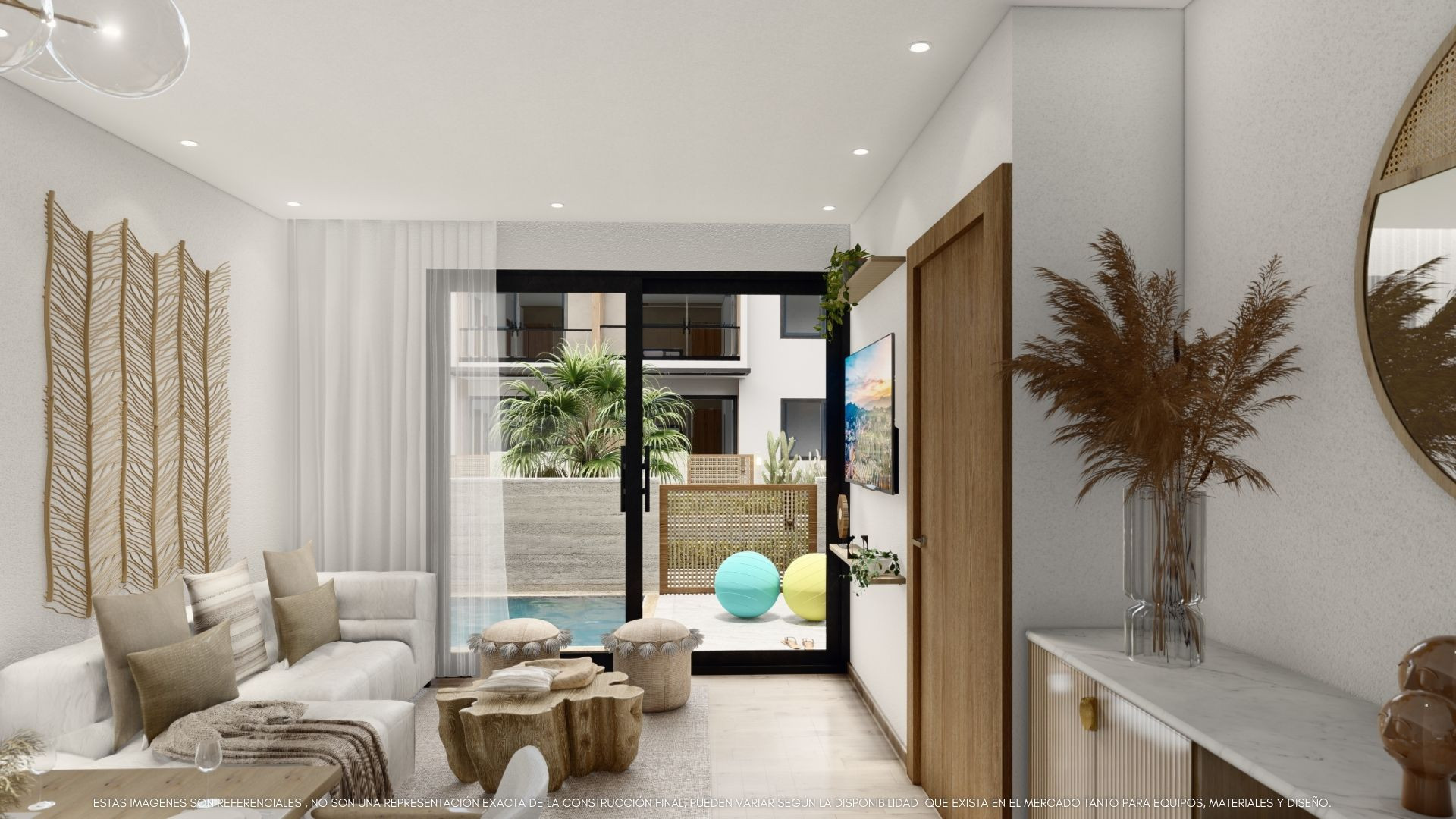 Apartamentos en el 1er nivel: Sala con concepto abierto a terraza.