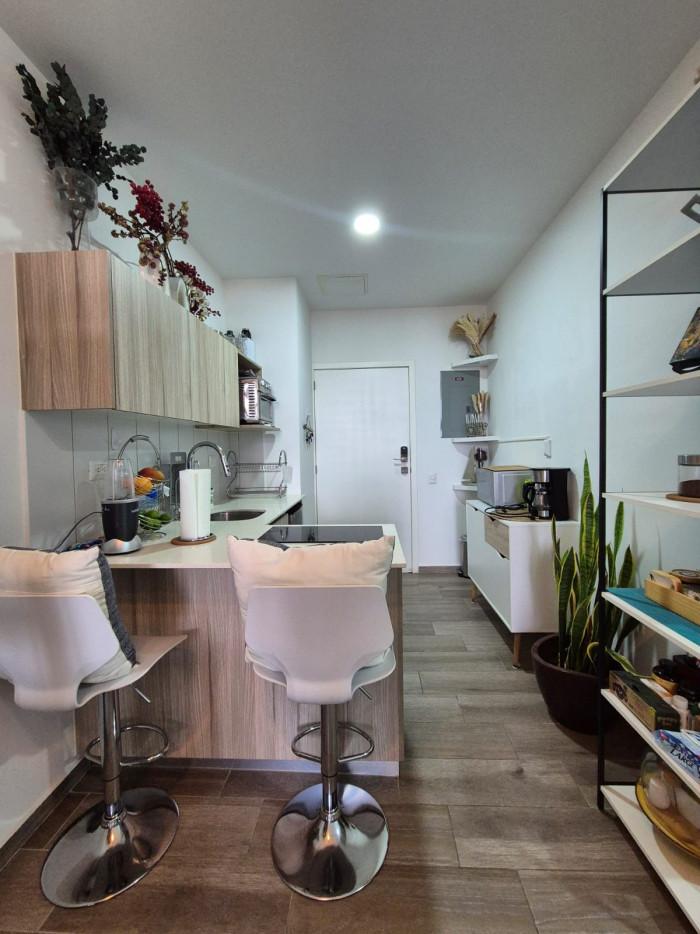 Ofrecemos este apartamento residencial en venta totalmente amueblado ubicado en una ubicación conveniente. Con un precio atractivo de USD 140,000.00, esta propiedad ofrece gran valor y comodidad para un joven, pareja o inversión para colocar en arrendamiento. El apartamento cuenta con todas las características que buscas en un hogar: amplios espacios, abundante luz natural y una distribución inteligente en un espacio integrando sala, comedor, cocina y habitacón, además posee baño completo, closet y área de lavado. El edificio dispone de instalaciones modernas y acabados de alta calidad para garantizar un estilo de vida confortable con las siguientes amenidades:
