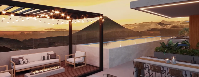 *roof top y planta baja*Incluyendo lap pool*Sky lounge*BBQ*Sun deck*Pergola grill*Hall *Cinema room*Kids park*Pet garden*Fitness center*Cook zone