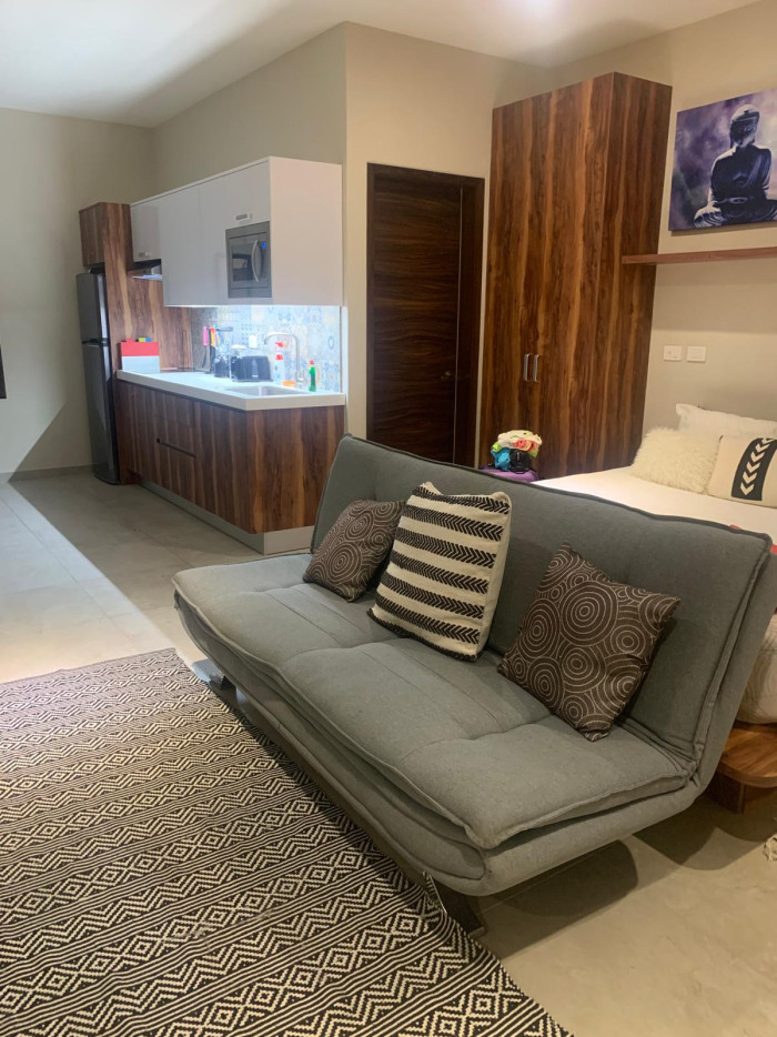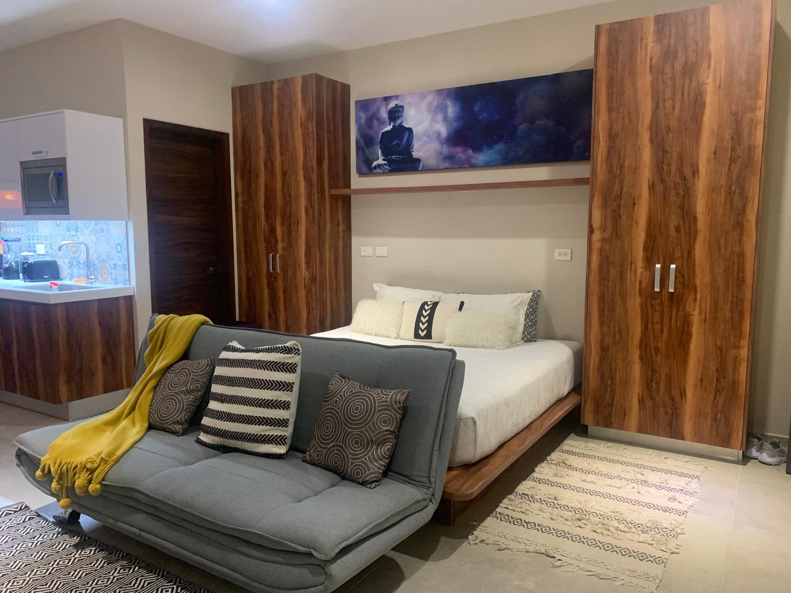 Este loft de 51.86 m² en la Región 15 de Tulum ofrece un diseño funcional con estancia, comedor, una recámara, baño completo y balcón. Totalmente amueblado, listo para habitar o rentar.