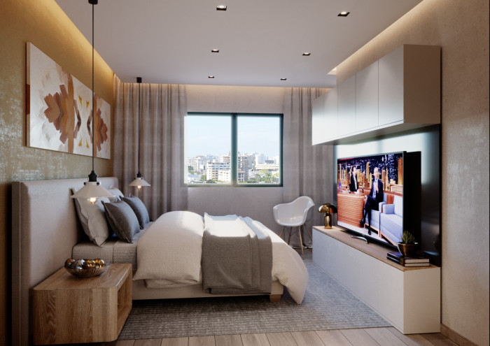 De los beneficios que podrás disfrutar al invertir en este proyecto es la inclusión de linea blanca, 6 niveles de parqueo, sistema de control de acceso inteligente, áreas sociales con vista panorámicas. Su ubicación privilegiada es de fácil acceso, cerca de importantes centros comerciales, y a todos los servicios sin necesidad de trasladarse a grandes distancias. Check-in / Check-out 24/7 Servicio de Valet Parking, Consergería 24/7, Housing Rental Assistance Roof Top Restaurant con vista 360 Beauty Spot Assistance Pick-up laundry station Airport Transport Assistence.