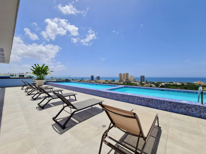 Piscina, jacuzzi, Sauna, Lounge bar, terraza, cine, BBQ, baños, salón multiuso, Área infantil, lobby climatizado y moderno, seguridad 24h7, 2 ascensores, portón eléctrico, circuito cerrado, gas común.