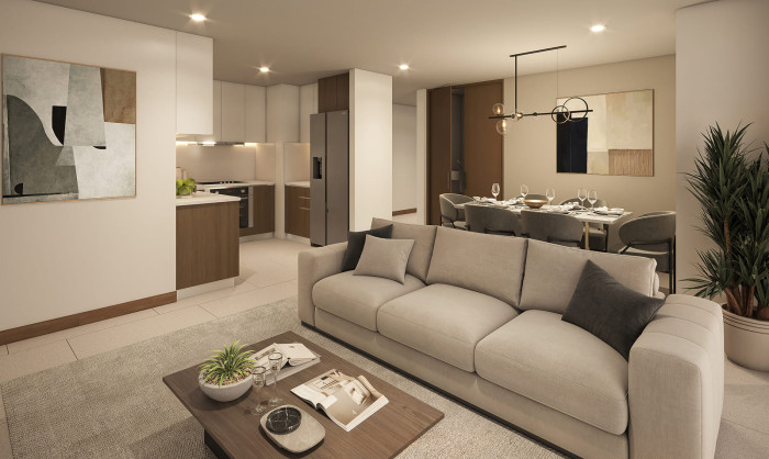 22 niveles de construcción, apartamentos de 1, 2 y 3 habitaciones, con más de 14 amenidades, 8 sótanos de parqueo