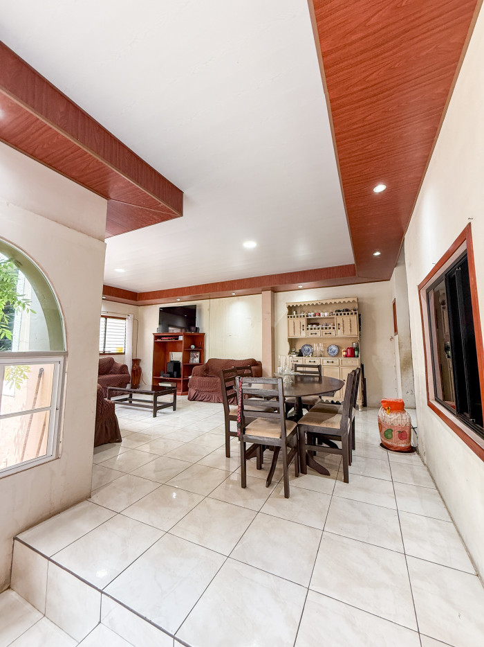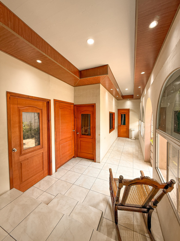 La casa está construida en dos niveles: En el primero se encuentran tres habitaciones, sala, comedor, área de cocina, patio interno y un baño completo. El segundo nivel dispone de una habitación adicional, posee espacio para dos vehículos. La propiedad cuenta con tanque para agua y bomba.