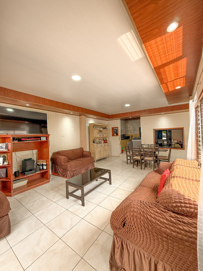 La casa está construida en dos niveles: En el primero se encuentran tres habitaciones, sala, comedor, área de cocina, patio interno y un baño completo. El segundo nivel dispone de una habitación adicional, posee espacio para dos vehículos. La propiedad cuenta con tanque para agua y bomba.