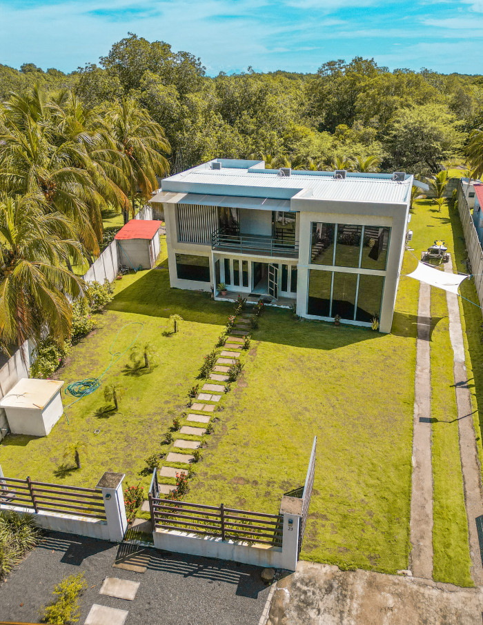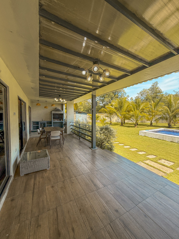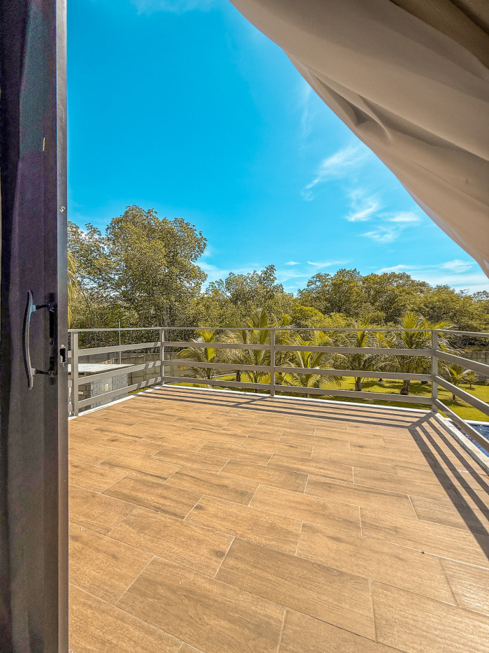 Con un terreno de 2,083.67 v² y 500 m² de construcción distribuidos en dos niveles, esta residencia destaca por su arquitectura moderna, amplios espacios y excelente iluminación natural. Dispone de 5 habitaciones, 4 baños, sala, comedor, cocina equipada, terrazas con vista, piscina, área de barbacoa, amplios jardines y parqueo para más de 10 vehículos.