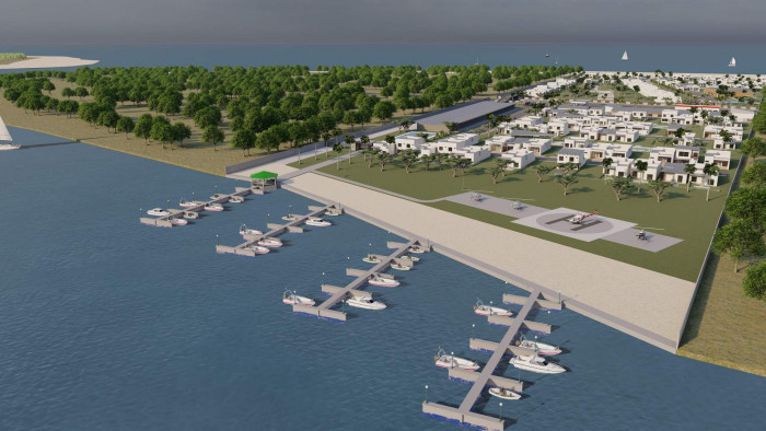 El proyecto incluye un régimen de construcción con cuatro opciones de casas modernas y minimalistas, enfocadas en la simplicidad, funcionalidad y estética limpia. Además, ofrece amenidades como siete piscinas, siete casas club, dos canchas de tenis, marina, wellness center, business center, coworking, hangares para embarcaciones, helipuerto, botadero, muelles flotantes, centro comercial y gasolineras terrestre y marítima.