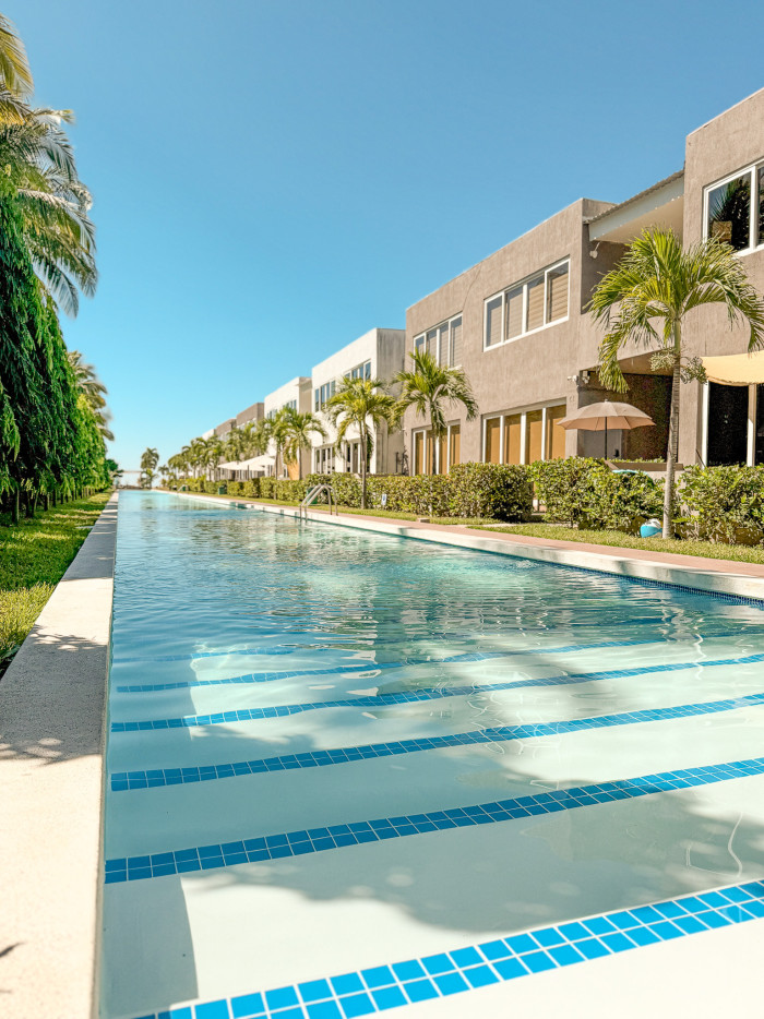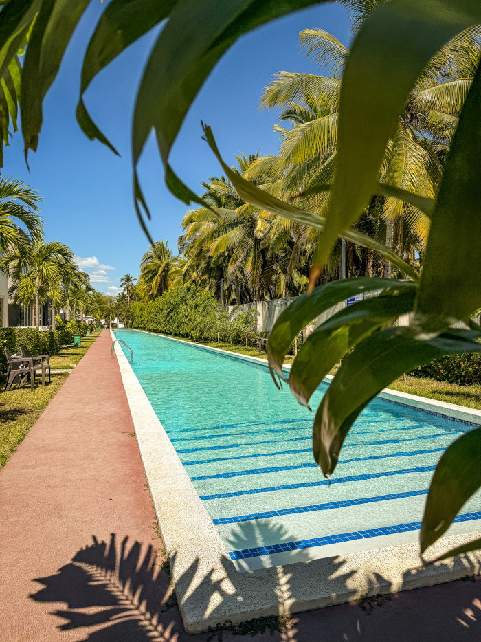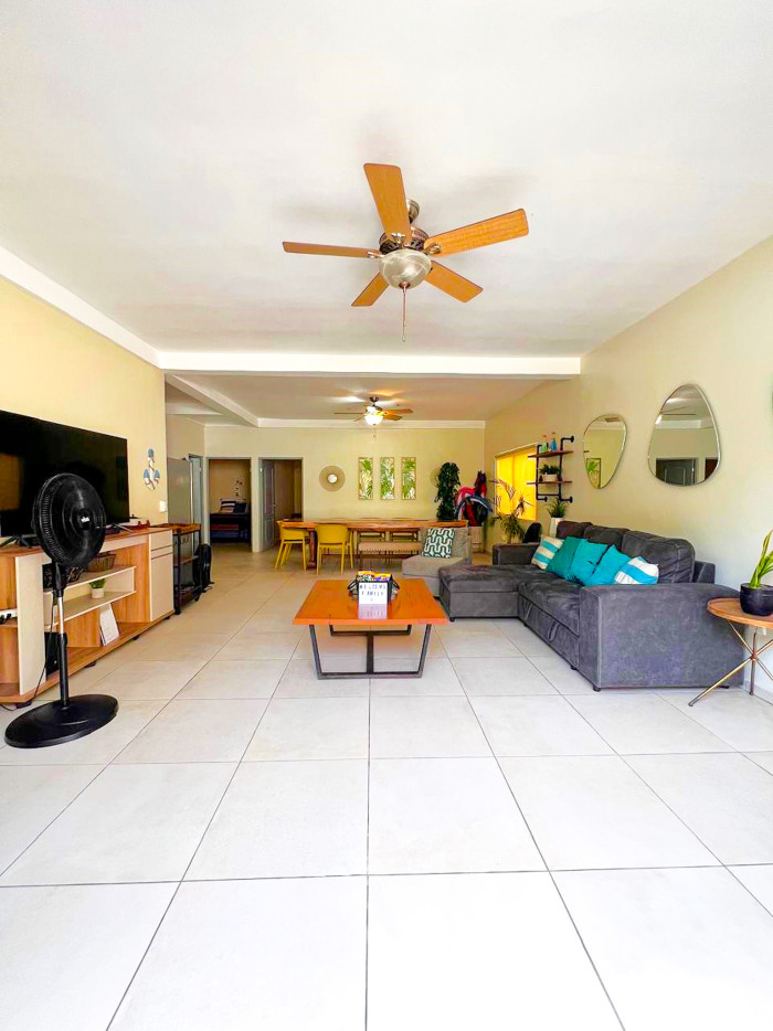 El residencial ofrece amenidades como piscina para niños, piscina para adultos de 100 metros de largo, considerada la más extensa de El Salvador, y vigilancia permanente las 24 horas.