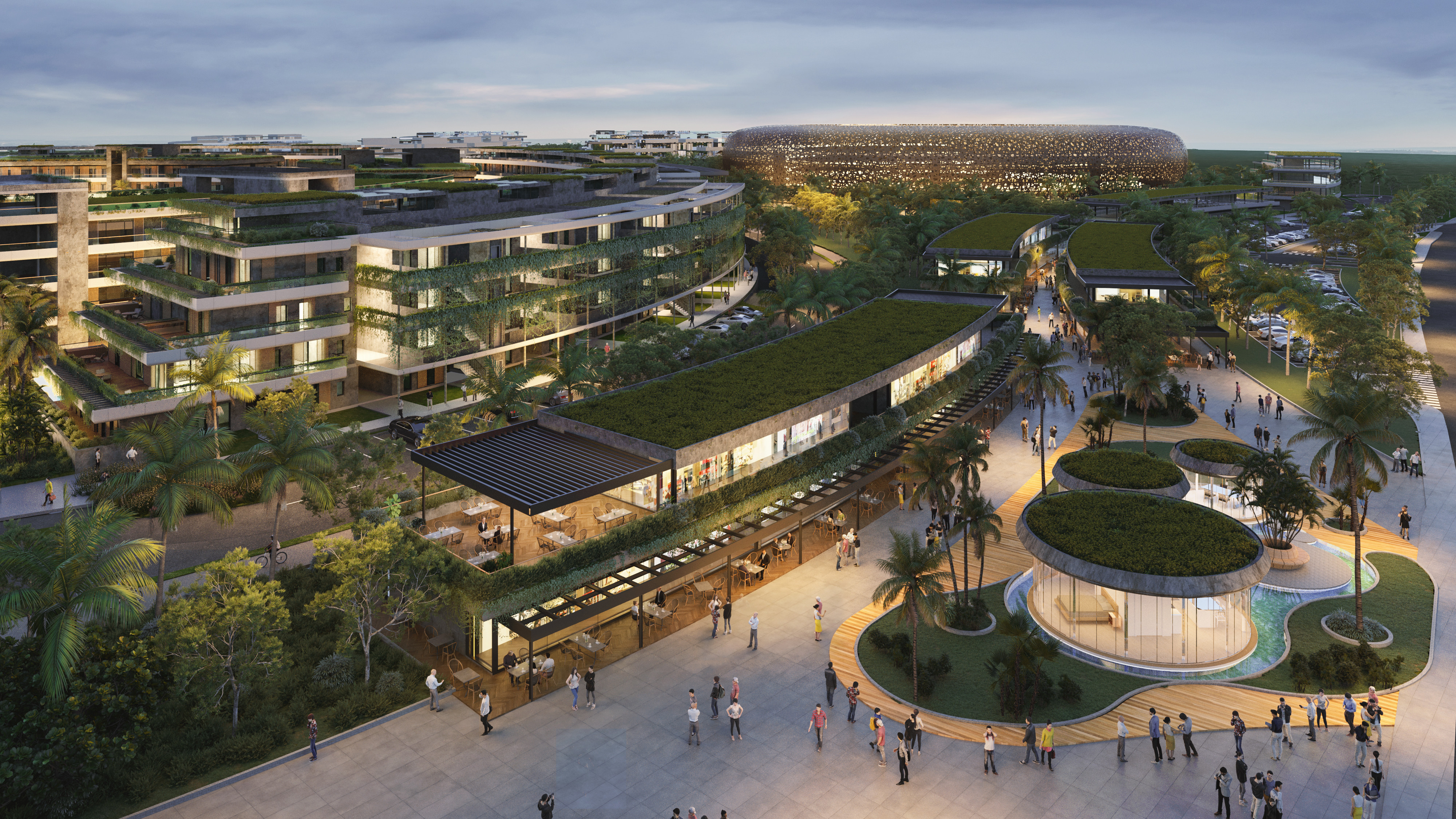 Incluye amplia gama de amenidades como 16 piscinas, jardines tropicales, áreas para BBQ, gimnasios, club de tenis, circuito para ciclismo y running, zonas verdes, restaurantes y un museo.
