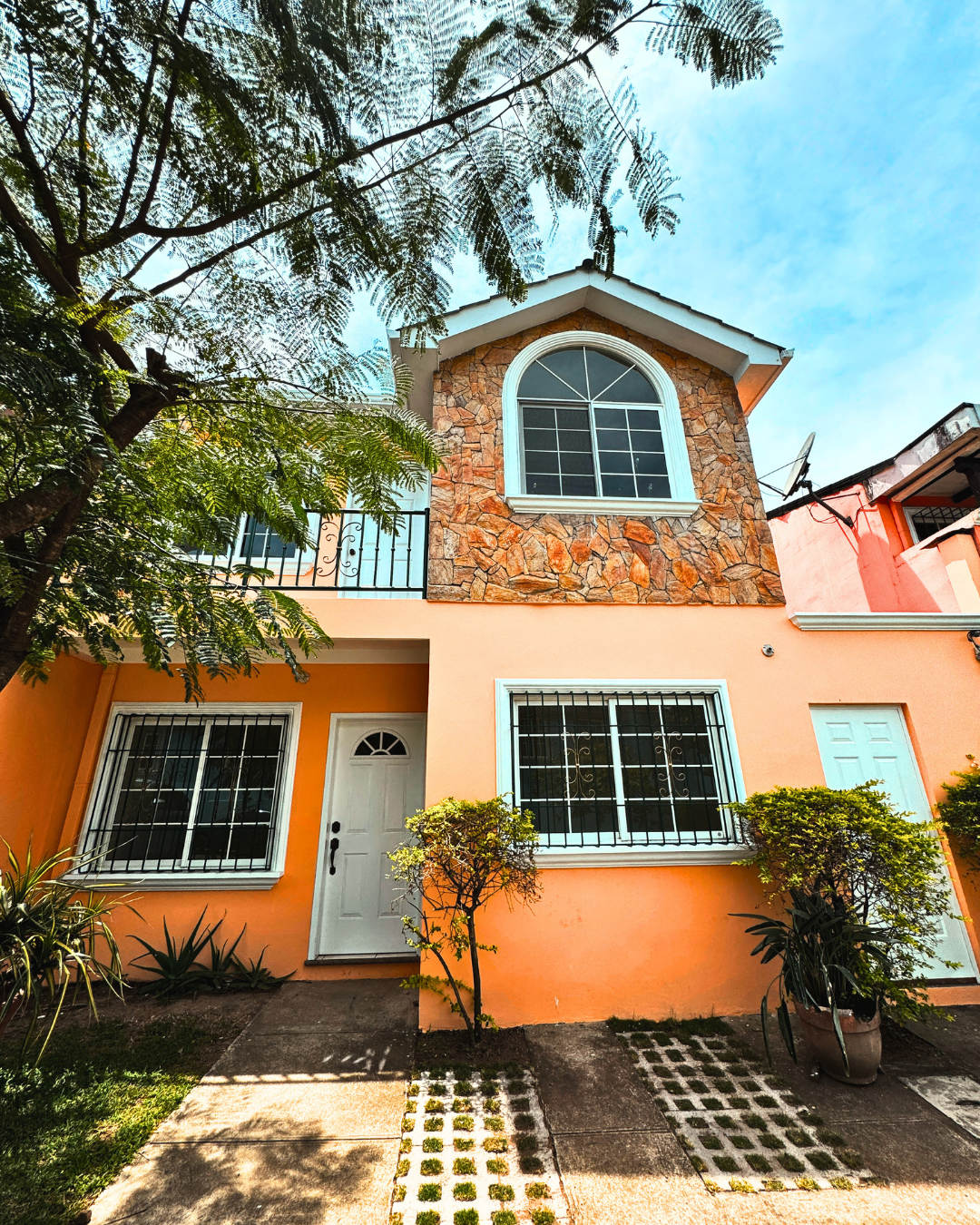 Se alquila amplia casa en residencial Joya de las Piletas, a minutos de San Salvador, Santa Tecla y el Puerto de La Libertad. Cuenta con 2 parqueos, estudio, sala con terraza grande, comedor con vista al jardín, cocina y área de servicio. En el segundo nivel: sala familiar, habitación principal con walk-in closet, baño y tina, además de 2 habitaciones junior con baño y closet.