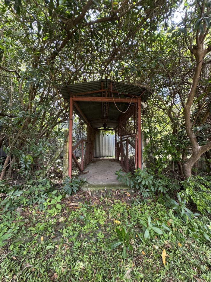 Puente que conecta hacia un segundo jardín, creando un entorno único en Escazú.