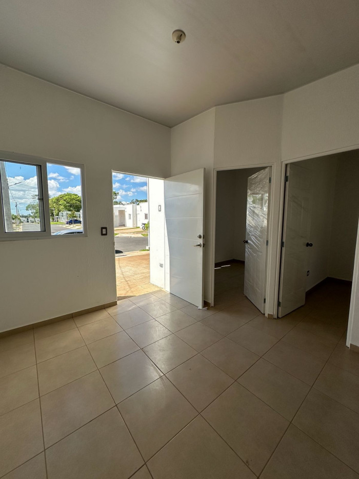 Casa a estrenar dentro de residencial privado Eco Terra Maquilishuat, Santa Ana. Cuenta con área para sala, comedor y cocina. Propiedad de una sola planta con dos habitaciones, un baño completo, área de lavado con pila, dos parqueos y jardín. Ubicado a 5 minutos de Las Ramblas Santa Ana, El residencial cuenta con doble acceso y salida hacia vias principales. cuenta con área social, piscina y seguridad las 24 horas.