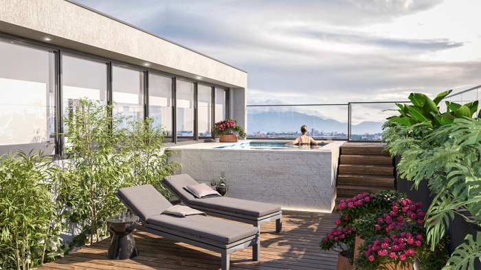 Zona chill out en la azotea con una espectacular vista a la ciudad de Santiago de los Caballeros.