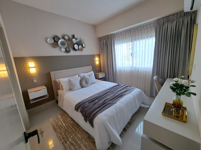Alquilo apartamento de 1 habitación amueblado, en lujosa torre de 16 niveles en el sector LA ESPERILLA. Características del apartamento 1 habitación principal con baño y Walkin closet Sala- Comedor Área de lavado Baño de visita Balcón Características de la torre: Lobby Área social en los niveles 17 y 18 Salón de eventos Piscina infinity vista 360 grados Área infantil Loung Bar Cine Gym Terraza