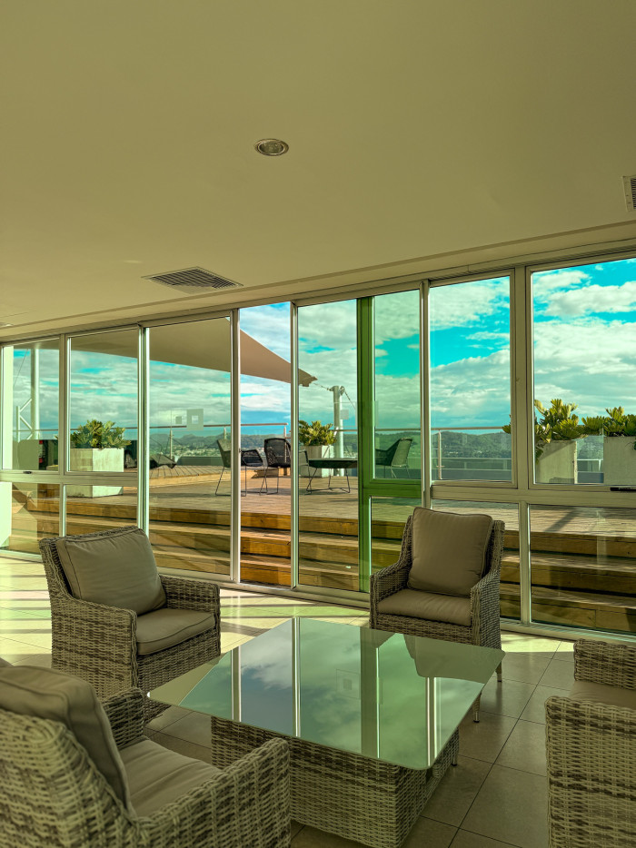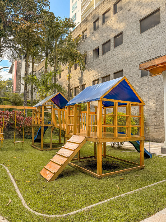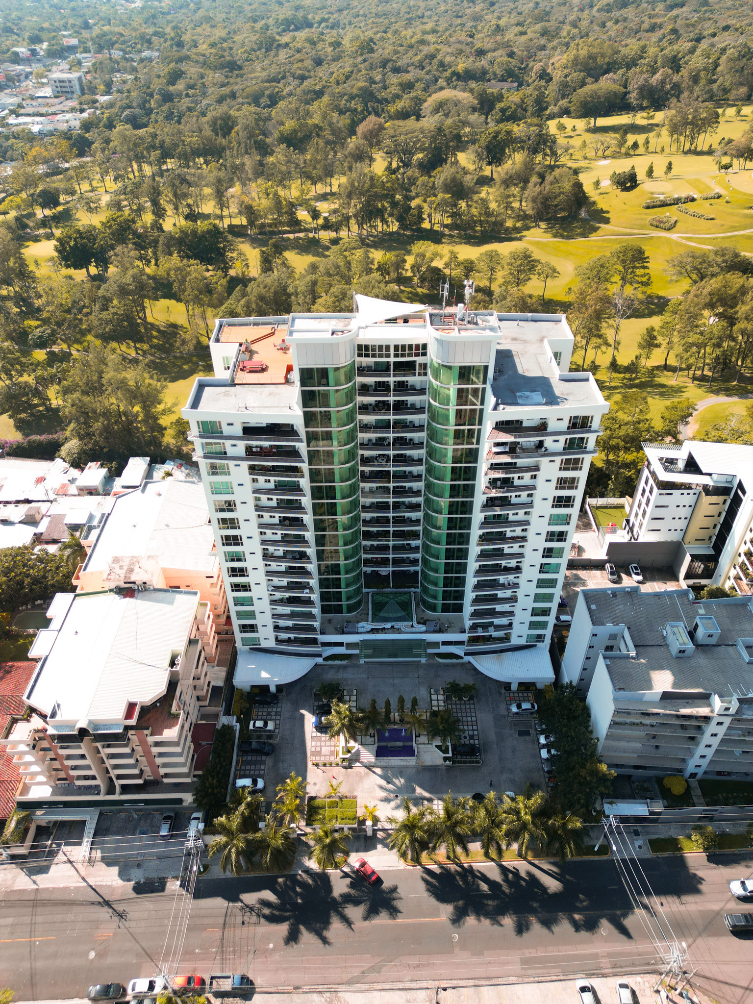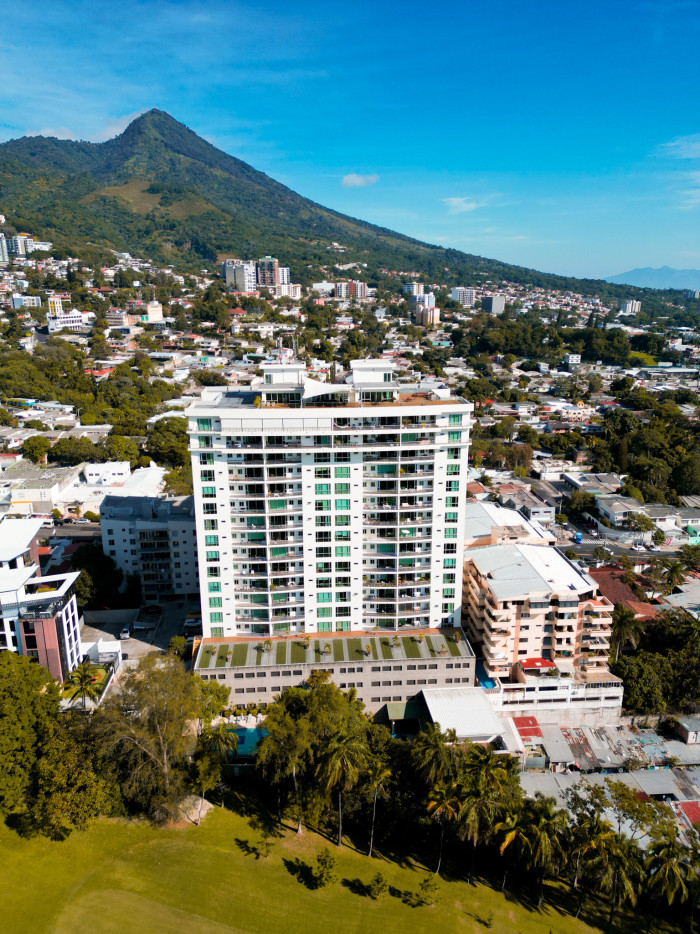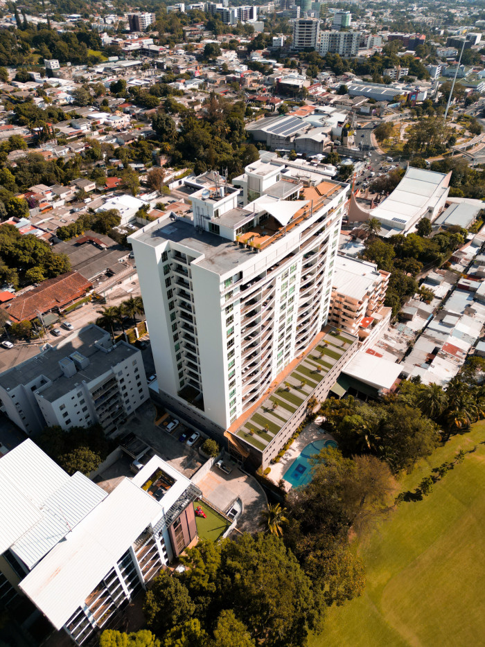 Este complejo parece un hotel, lo tiene todo. La torre cuenta con seguridad las 24 horas y en el nivel 17 se encuentran terrazas con vistas 365 para compartir con familia o amigos, o para hacer home office. En el nivel bajo con vista al Club de Golf, encontramos la piscina, área de juegos para niños, gimnasio, sport bar con mesas de billar y canchas de squash.