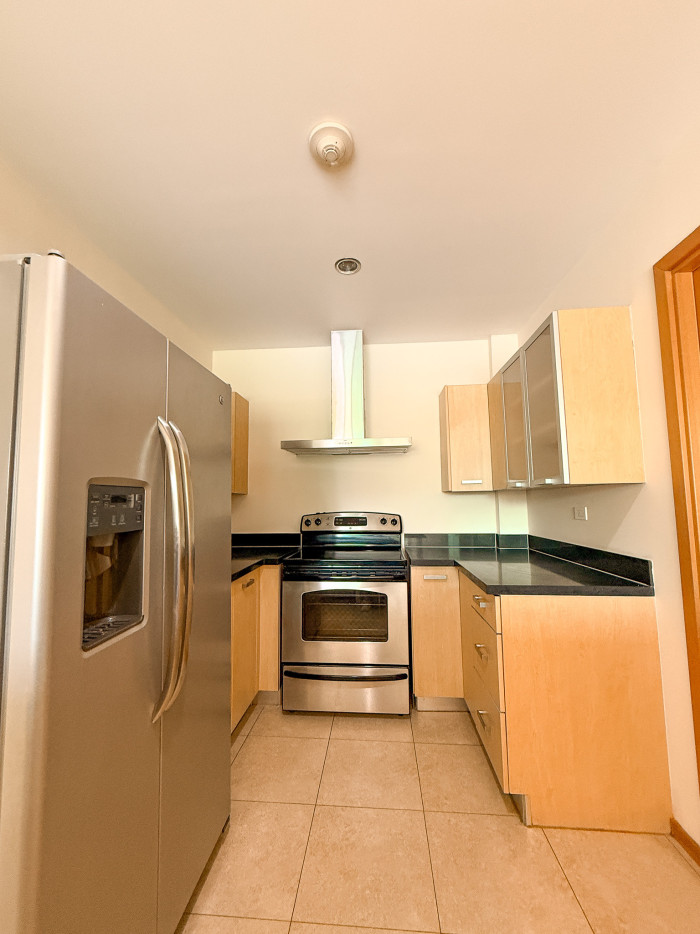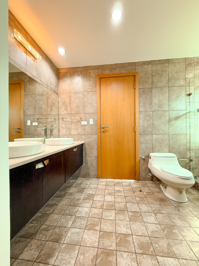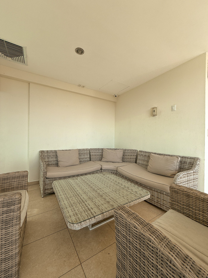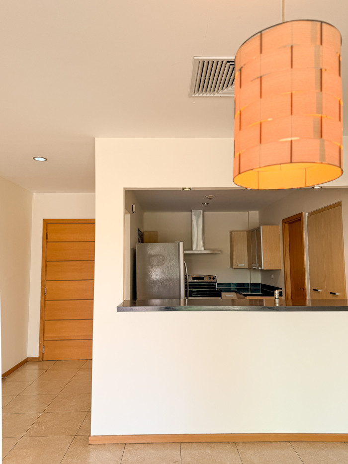 Cuenta con dos habitaciones, ambas con baño privado, walk-in closet y acceso a una segunda terraza. El área de habitaciones se encuentra separada del área social mediante una puerta, lo que brinda mayor privacidad. Además, el apartamento ofrece baño social, área de servicio completa con baño, zona de lavandería con pila y espacio para planchar. Además Incluye calentador central, aire acondicionado central en todo el apartamento, sistema de alarma contra incendios y clóset de blancos.
