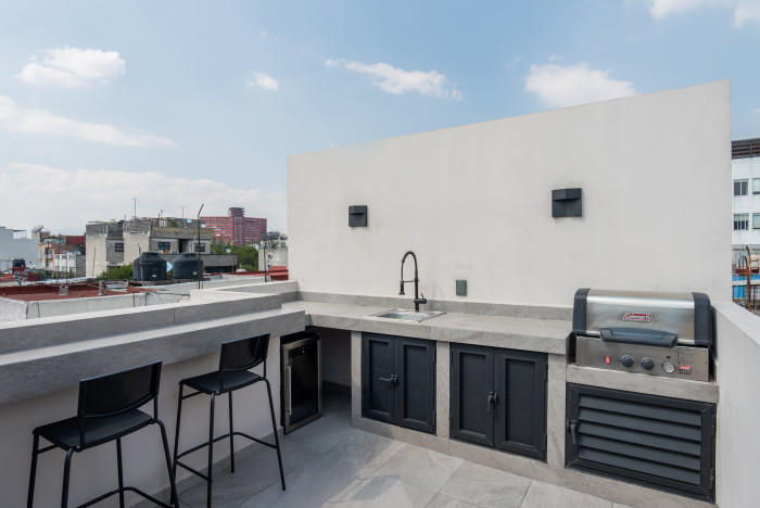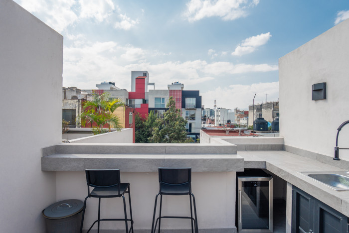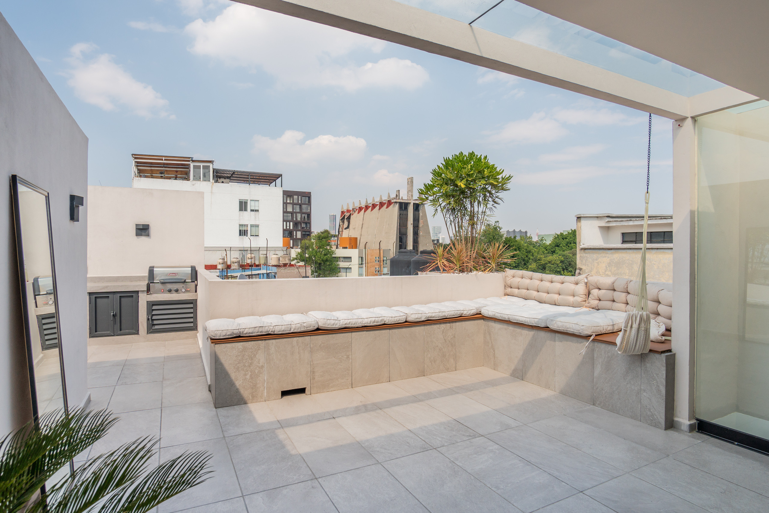 PH en venta en Roma Norte ubicado en la calle Coahuila, dentro de un edificio nuevo con solo 13 departamentos. Distribuido en dos niveles, con un diseño moderno y lleno de luz natural.