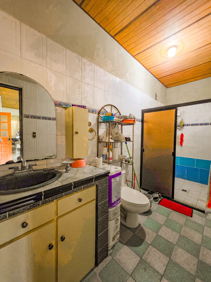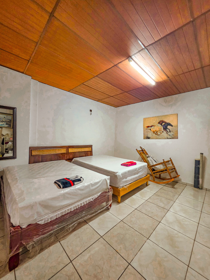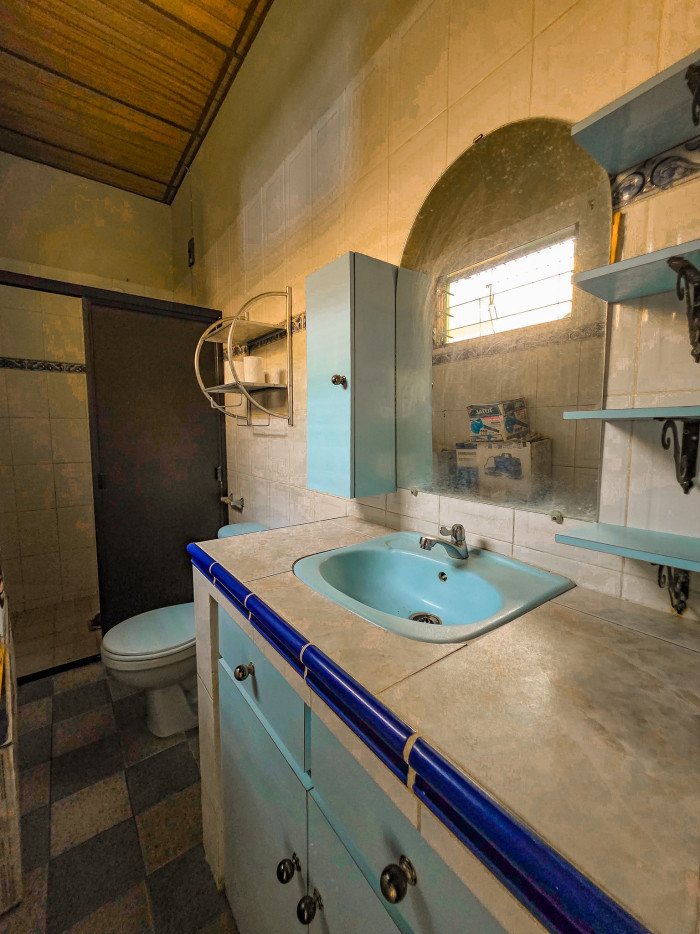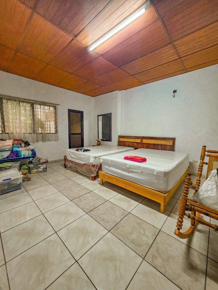 La casa cuenta con tres habitaciones amplias, cada una con clóset y baño propio. El área social es espaciosa e incluye dos salas, comedor, cocina, baño social, pasillo de mantenimiento, habitación de servicio completa, área de lavandería y bodega.