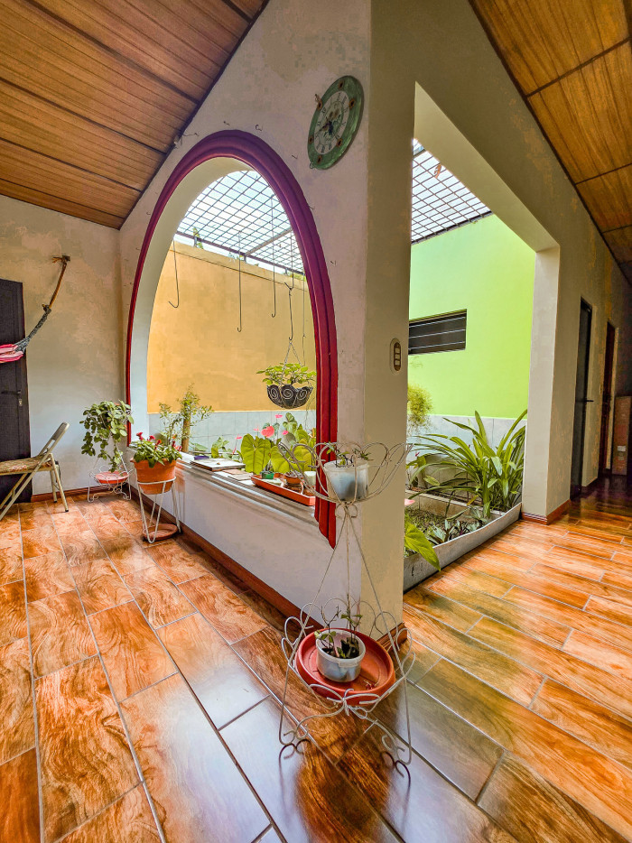 Vive rodeado de naturaleza y disfruta de vistas panorámicas dentro de la ciudad. Esta casa fue diseñada para que cada espacio invite a relajarse y apreciar el entorno. Al ingresar, encontrarás una cochera para tres vehículos con portón eléctrico. Subiendo las gradas, a la izquierda se ubica una terraza con bancas ideales para leer o descansar, seguida de un hermoso jardín con un gran árbol que aporta frescura a toda la propiedad.