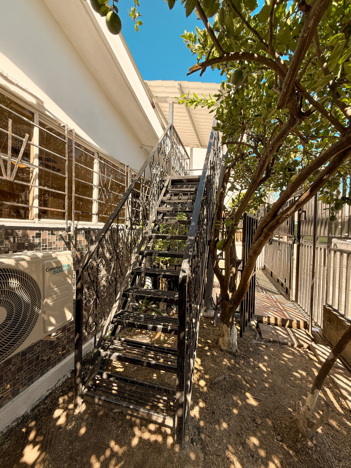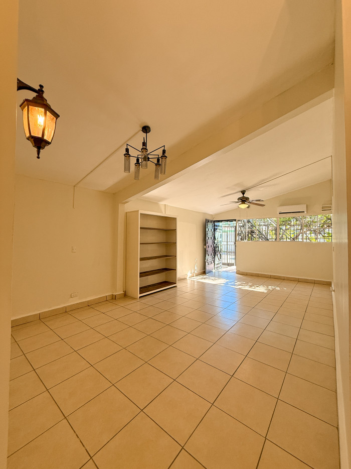 La propiedad ofrece una amplia sala, área de comedor (o adaptable como oficina), tres habitaciones espaciosas, dos baños, cocina y área de lavado completamente equipadas, aires acondicionados, terraza, medio jardín y estacionamiento interno para tres vehículos.