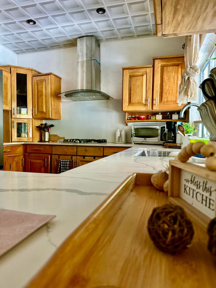 La propiedad incluye dos mini apartamentos recién construidos, actualmente usados en Airbnb, y un espacio con potencial comercial ideal para restaurante o más apartamentos; cuenta con estacionamiento para seis vehículos y acceso por calle asfaltada.