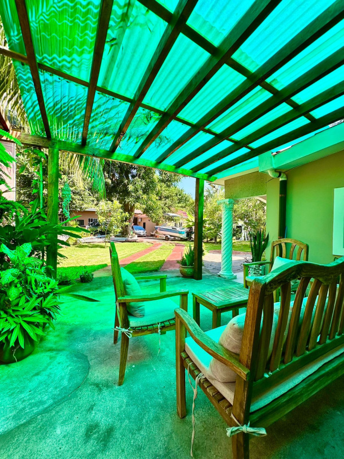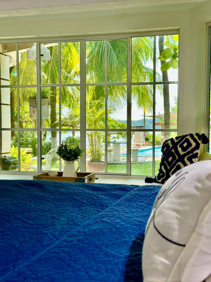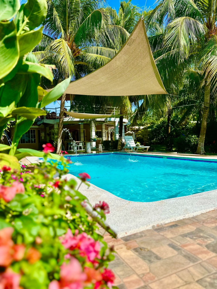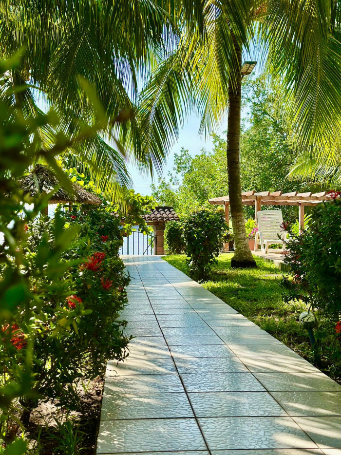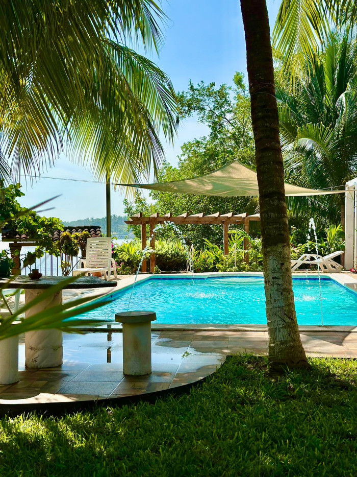 La propiedad ofrece amplias áreas sociales de descanso rodeadas de palmeras que brindan sombra natural durante todo el día, espacios con hamacas, mecedoras, fire pit y una gran piscina entre vegetación, además de una salida privada al estero con espacio suficiente para construir muelle; también dispone de una sala familiar exterior.