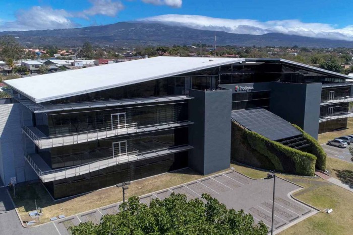 Oficina en Alquiler en Oficentro Tributo Heredia, este proyecto sorprende a los visitantes con aspectos arquitectónicos llamativos como vista panorámica de 360 hacia afuera, frases motivacionales al recorrer los pisos de los inmuebles, un diseño sensorial o el tamizado de pérgola de plantas trepadoras que hacen del inmueble: fresco por la mañana, pero con sombras atractivas de admirar durante la noche.