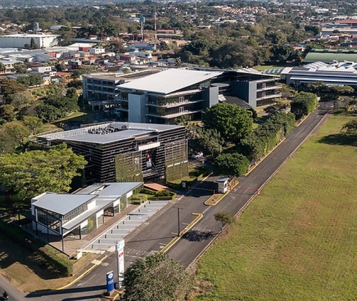 Oficina en Alquiler en Oficentro Tributo Heredia, este proyecto sorprende a los visitantes con aspectos arquitectónicos llamativos como vista panorámica de 360 hacia afuera, frases motivacionales al recorrer los pisos de los inmuebles, un diseño sensorial o el tamizado de pérgola de plantas trepadoras que hacen del inmueble: fresco por la mañana, pero con sombras atractivas de admirar durante la noche.