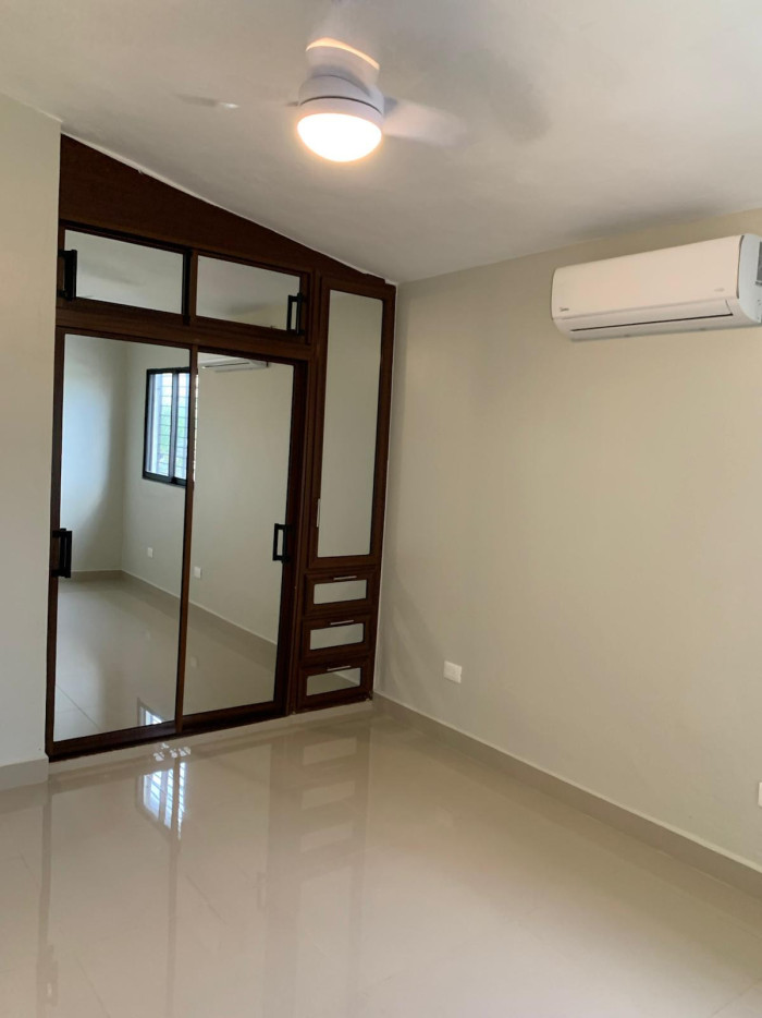 10 cámaras, Intercom con cámaras en los dos niveles, Piso renovado en los dos niveles en porcelanato, abanicos nuevos en cada habitación y en la sala del 2do nivel, plomería y electricidad actualizada con agua caliente y línea directa de gas para la secadora. Cocina y baños 100% nuevos y modernos.