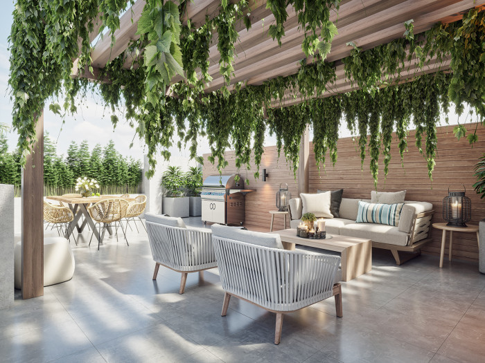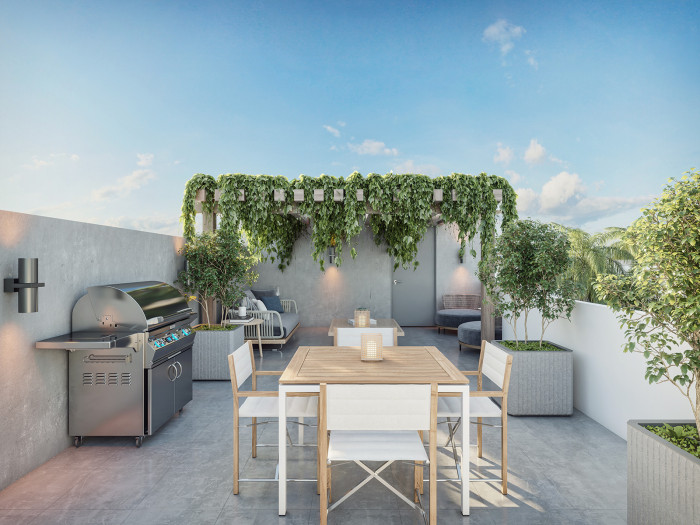 Proyecto residencial en edificio de 4 niveles, con terraza privada en los apartamentos del cuarto nivel.