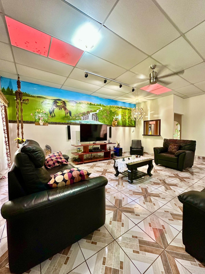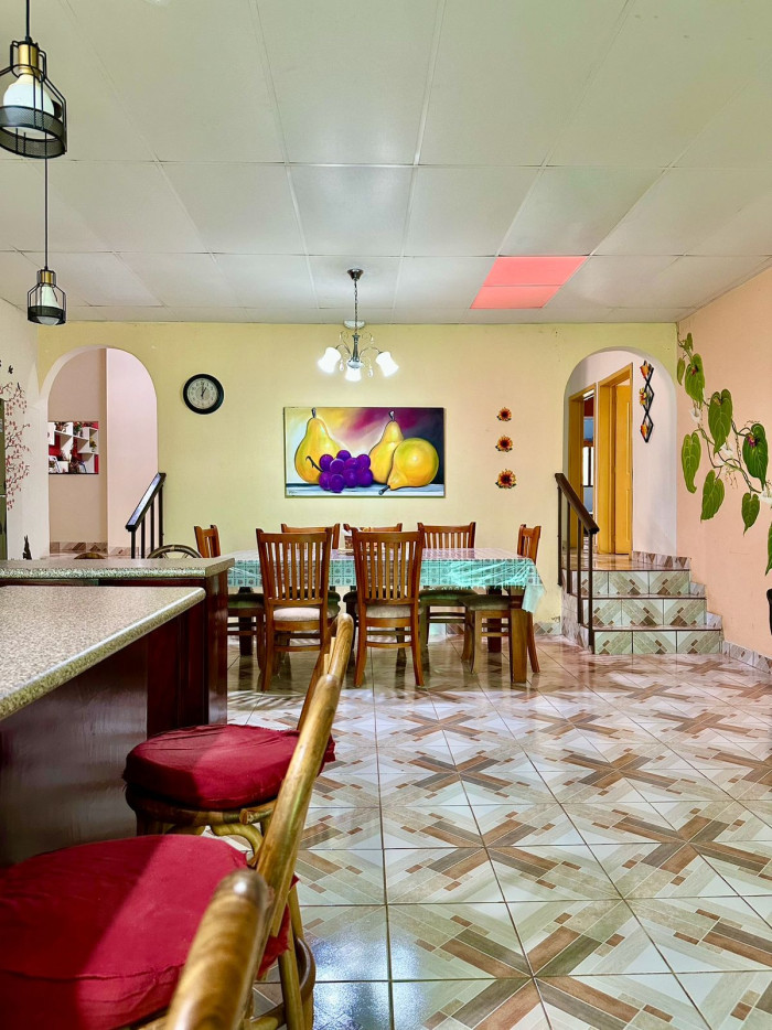 La propiedad cuenta con un terreno de 998 v² y una construcción de 350 m², distribuidos en 3 amplias habitaciones (la principal con A/C), dos baños completos, dos salas familiares al interior de la vivienda, comedor, cocina y área de lavado. Además, cuenta con un amplio jardín en la parte trasera, con un área techada para eventos familiares y acceso directo a un garaje con capacidad para 2 vehículos y estantes incluidos para colocar herramientas o almacenaje, así como un espacio adicional para estacionar hasta 5 vehículos más.