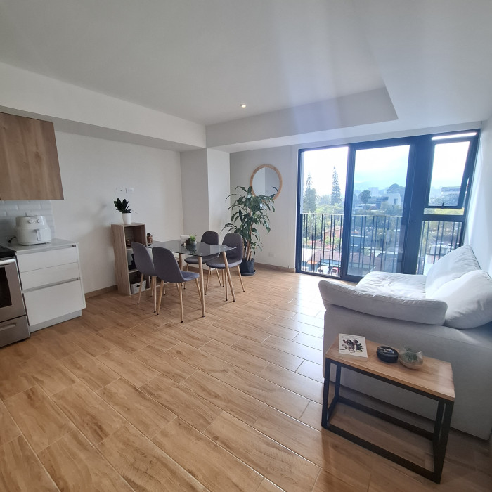Apartamento en renta amueblado, incluye linea blanca, balcón. El ingreso para visitas se autoriza por medio de QR.
