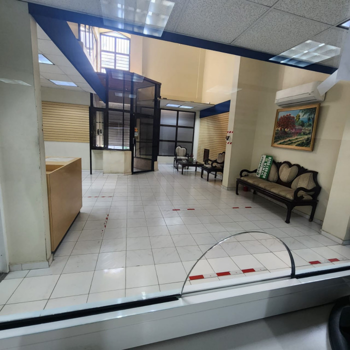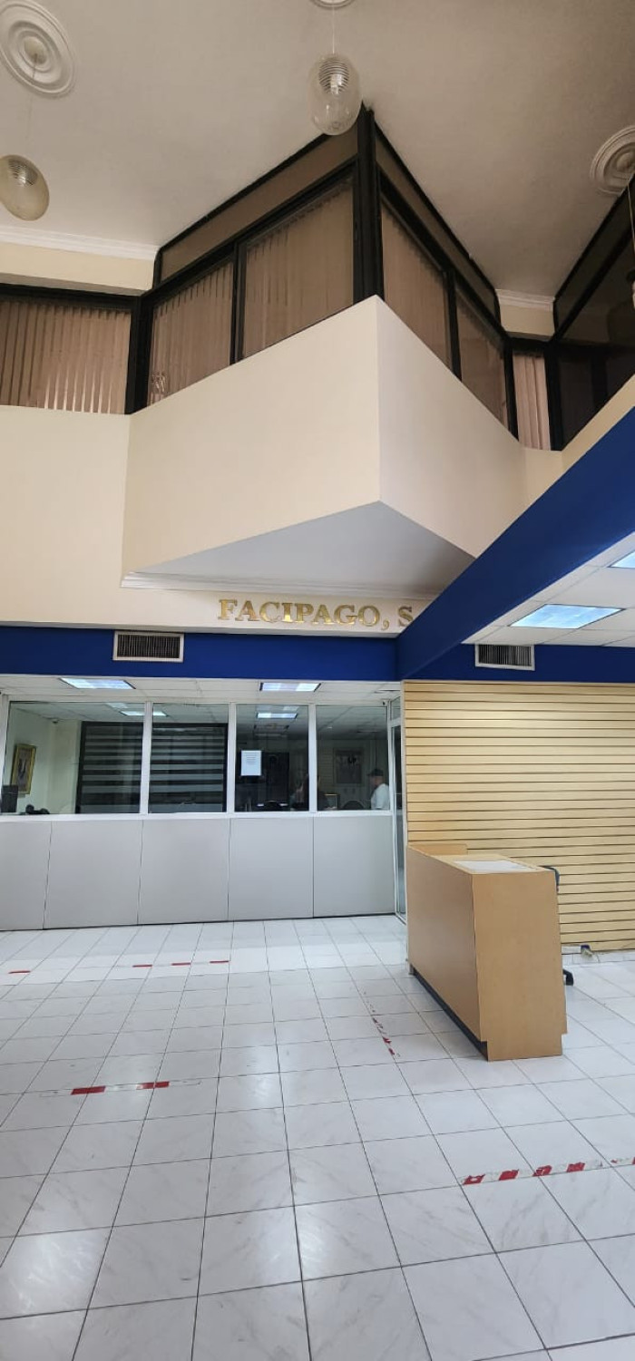 Tiene en primer nivel un recibidor de doble altura, varias oficinas, áreas de caja, oficinas administrativas, medio baño y cocina