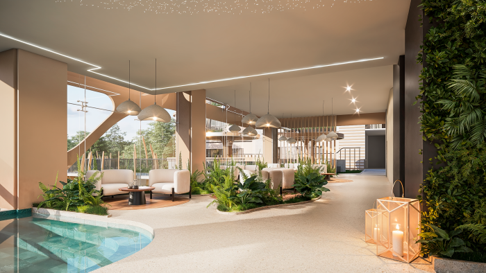 El proyecto está conformado por dos torres residenciales con 249 apartamentos, ocho sótanos con ventilación natural, motor lobby, área de bodegas, planta eléctrica y espacios destinados al personal de servicio. Además, ofrece una piscina climatizada y más de 25 amenidades exclusivas, destacándose como una propuesta única en el país.