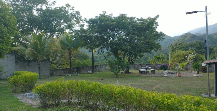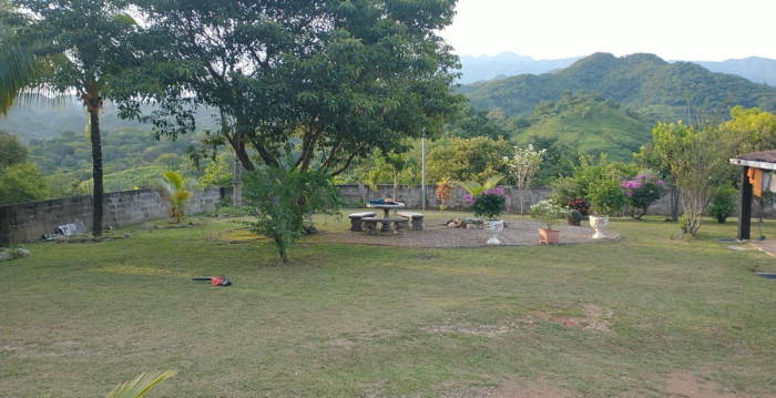 La propiedad cuenta con una casa de dos habitaciones, 2 baños completos, baño social, espacio de sala, comedor y cocina, además de un amplio corredor, brindando visibilidad a todo el terreno y sus impresionantes vistas a las montañas y atardeceres. Ideal para familias que deseen tener su casa de campo o también para construir un restaurante o pequeño turicentro con cabañas. Calle de fácil acceso para todo tipo de vehículo. Además ya cuenta con servicios de agua y luz. Dimensión total del terreno de 4,351.26 v² equivalentes a 0.7513 acres y 159.55 m² de construcción.
