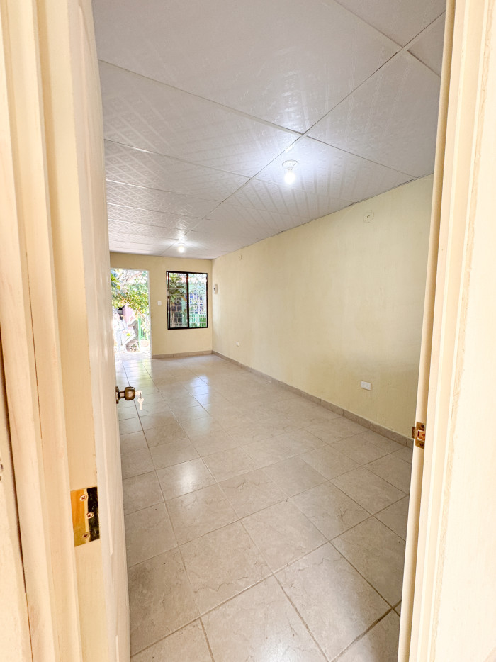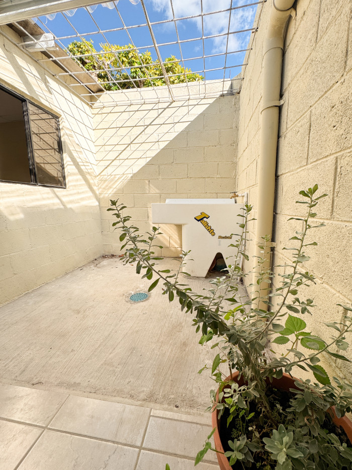 Vivienda de un nivel con distribución funcional que incluye sala y comedor, cocina, tres habitaciones, un baño completo, patio pequeño y ára de lavadero. Además, dispone de parqueo común. Dentro del residencial cuenta con parque grande con chanchas de basquet y piscina.