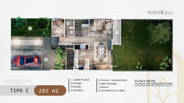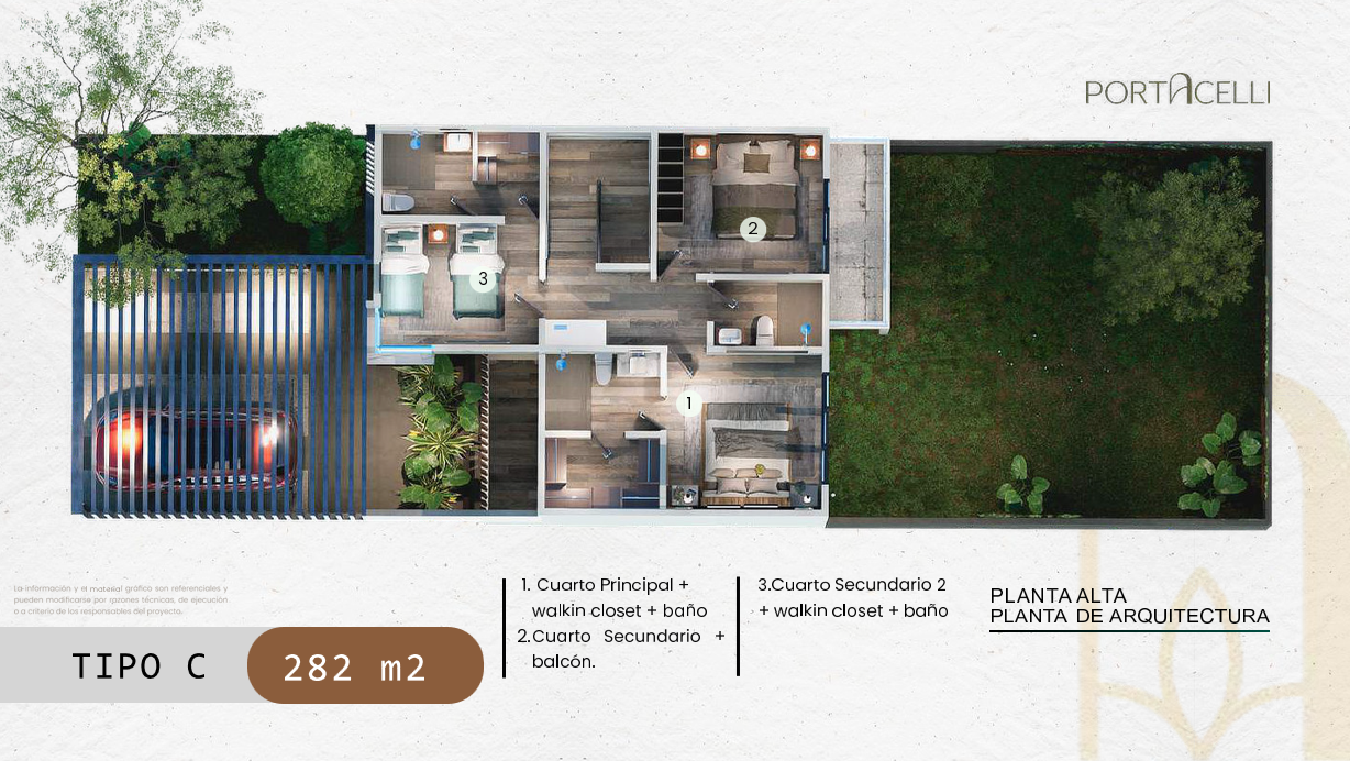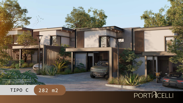 Las residencias cuentan con distribuciones amplias y funcionales, áreas sociales integradas y espacios pensados para el confort diario, dentro de un entorno residencial de baja densidad y bien organizado. Con una distribución de sala social más área de bar, amplio jardín, habitación de servicio con baño, baño de visitas, área de lavandería, patio, jardín frontal, garage, estudio, sala, comedor y cocina modernos, habitación principal con walking closet y baño, y dos habitaciones junior, cada una con baño privado, una con salida al balcón. Los metrajes de construcción van desde los 282 m² hasta los 341 m² y los terrenos van desde las 383 v² hasta las 650 v².