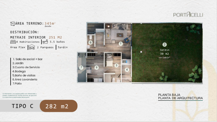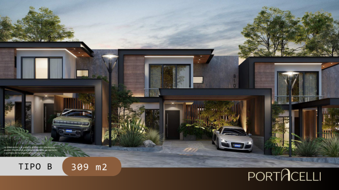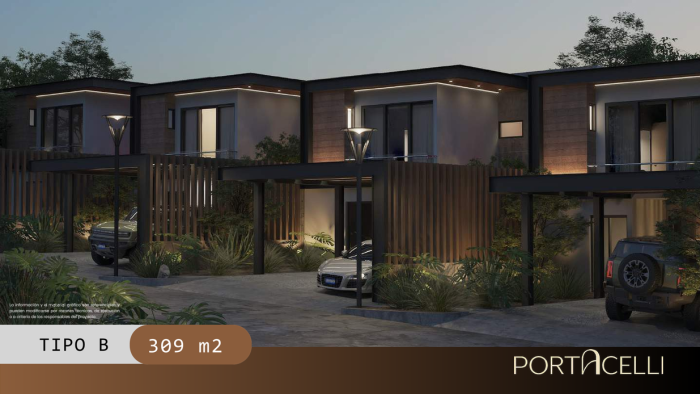 Las residencias ofrecen espacios amplios y funcionales, con áreas sociales integradas y ambientes pensados para el confort diario, desarrolladas en un entorno residencial de baja densidad y organización cuidada. La distribución incluye sala social con área de bar, jardín amplio, habitación de servicio con baño, baño de visitas, área de lavandería, patio, jardín frontal, garaje, estudio, sala, comedor y cocina de diseño moderno, habitación principal con walking closet y baño, además de dos habitaciones junior cada una con baño privado, una de ellas con salida al balcón.