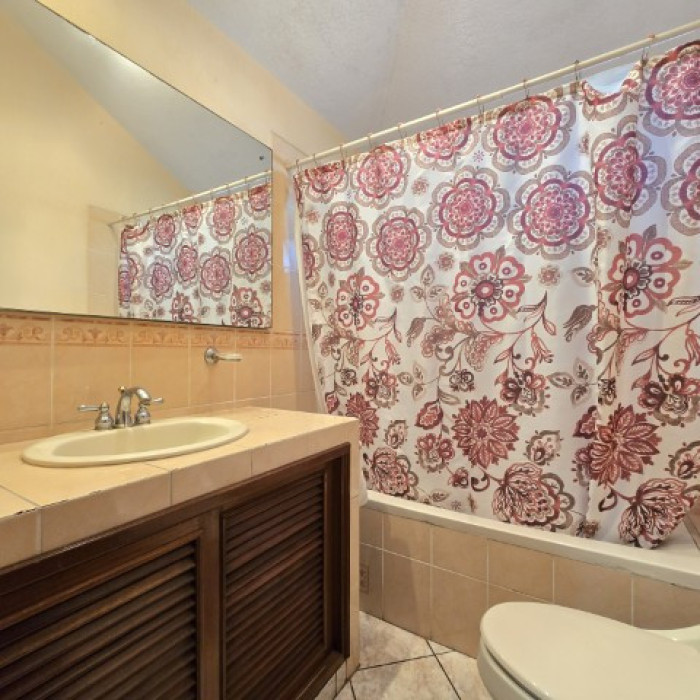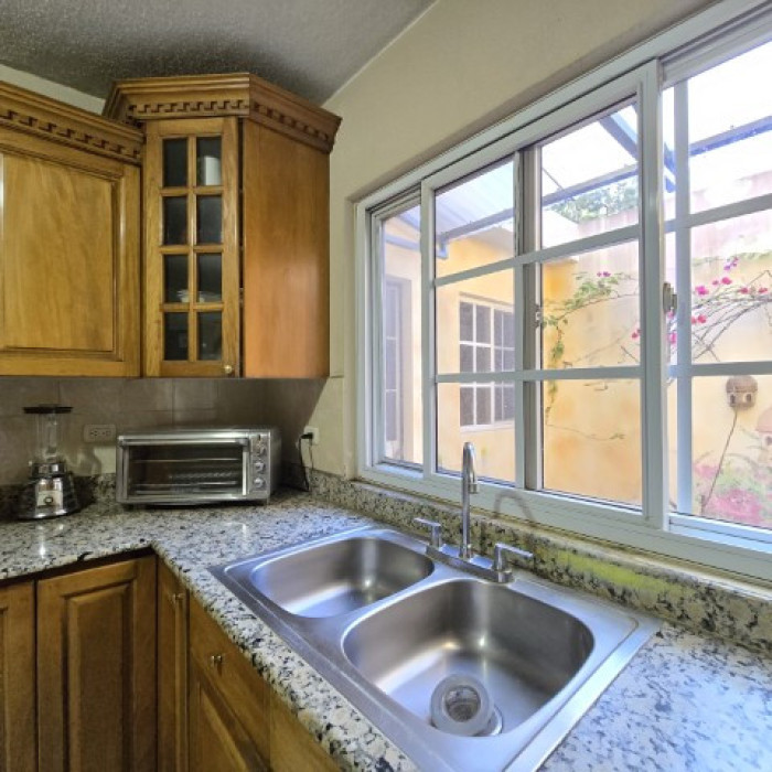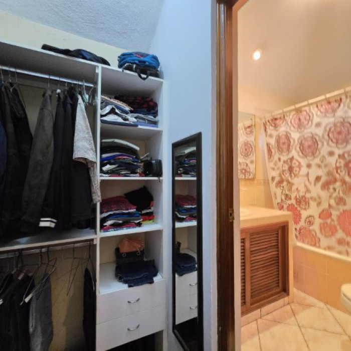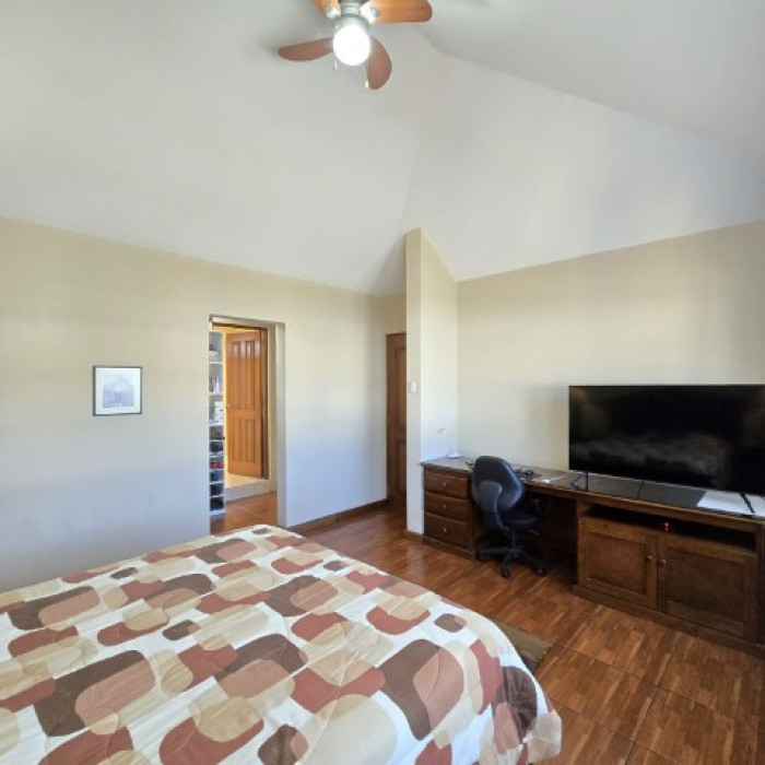 Gabinetes, top de granito y salpicadera alta en la cocina, walk-in closet y baño privado para la habitación principal, walk-in closet y baño privado para la habitación junior, closet y baño privado para una de las habitaciones secundarias, factibilidad para diseñar puerta de acceso terraza sobre bodega. Además, incluye galerías de cortinas,