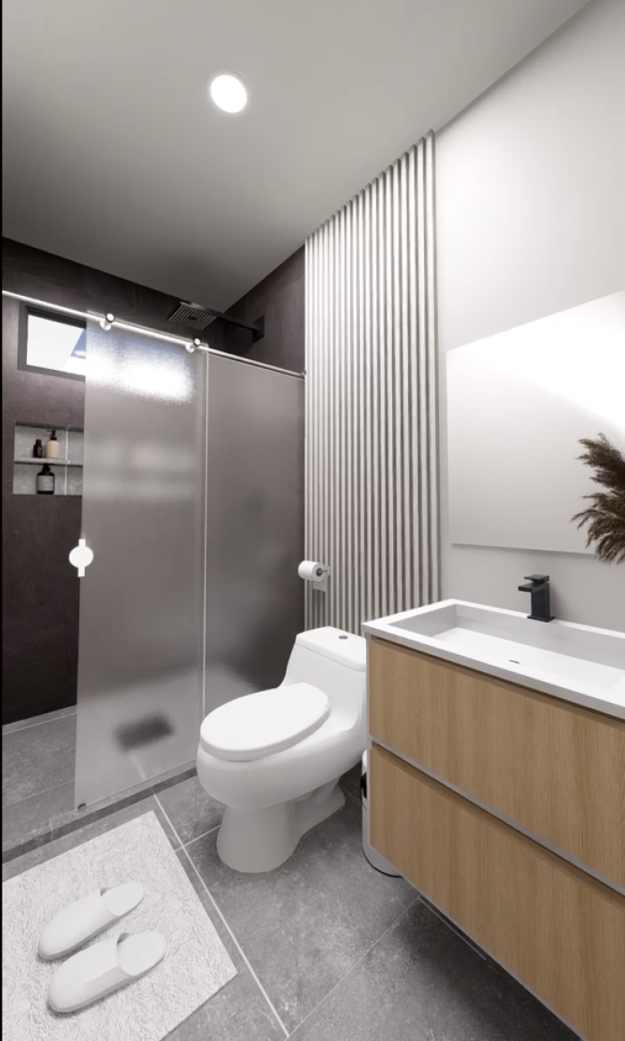 La propiedad se encuentra en la última fase de construcción, es totalmente moderna y dispone de tres habitaciones, dos baños completos, sala, cocina, balcón con vista exterior y área de lavandería integrada.