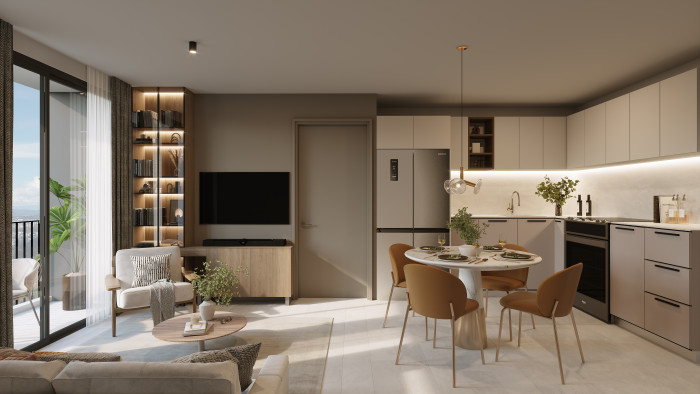 El Apartamento cuenta con:79m2 de apartamento25m2 de 2 parqueos paratotal de 104m2 2 baños completos1 bodega tres habitacionesbalcón sala comedor cocinaofrece amplitud, funcionalidad y una inversión segura en un proyecto diseñado para generar comunidad y bienestar.