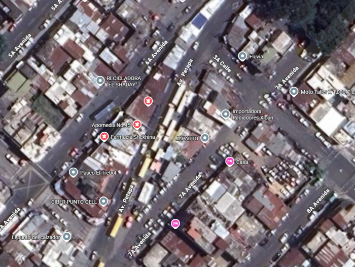 Casa comercial en venta en el Trebol y Petapa Zona 12 con ubicación estratégica a pocos metros de salida a Boulevard Liberación y a una cuadra de la Aguilar Batres además está cercana a la estación de parada del Transmetro El Trébol. La propiedad cuenta con acceso a la Petapa y la 6a. Avenida, doble acceso.