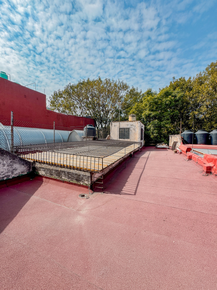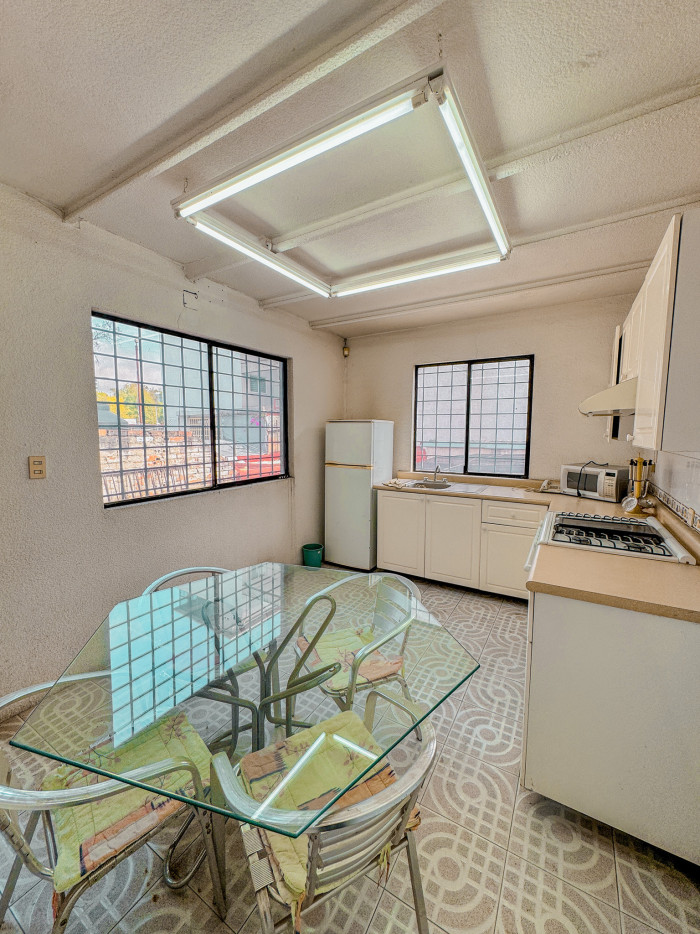 En la planta alta se encuentra una cocina equipada con estufa, microondas y mesa para cuatro personas, así como un área con potencial para desarrollar un roof garden, ideal como espacio de convivencia o expansión.