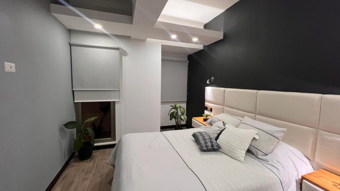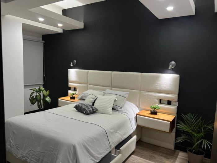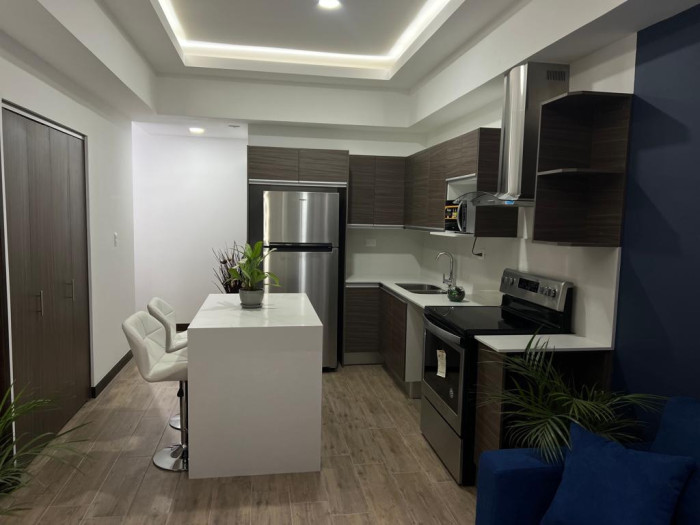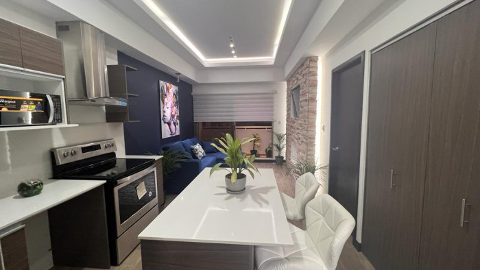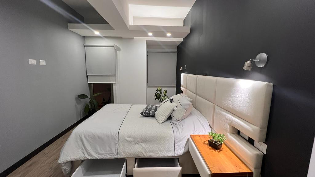 Nivel alto, de 1 habitación, amueblado con muy gusto. Ideal para profesional que trabaje en el área, universitarios, médicos etc. Apartamento con Balcon, habitable 56 metros + 1 parqueo.