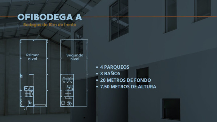 El proyecto está conformado por 33 ofibodegas con metrajes desde 170 m² hasta 500 m², brindando un entorno empresarial ordenado y seguro.