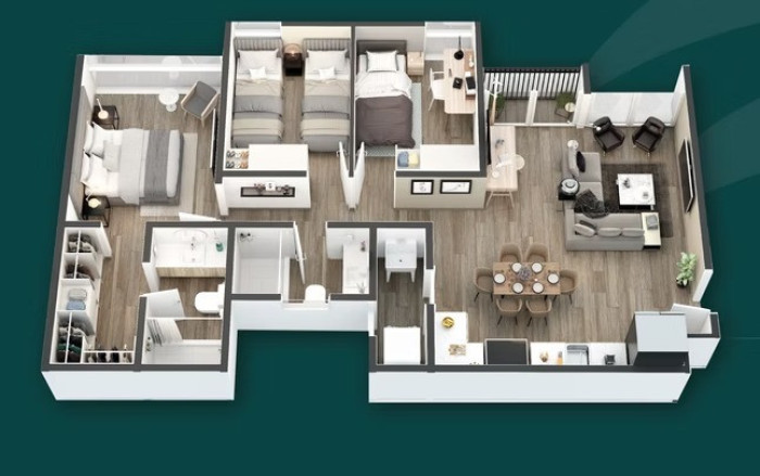 3 habitaciones total: